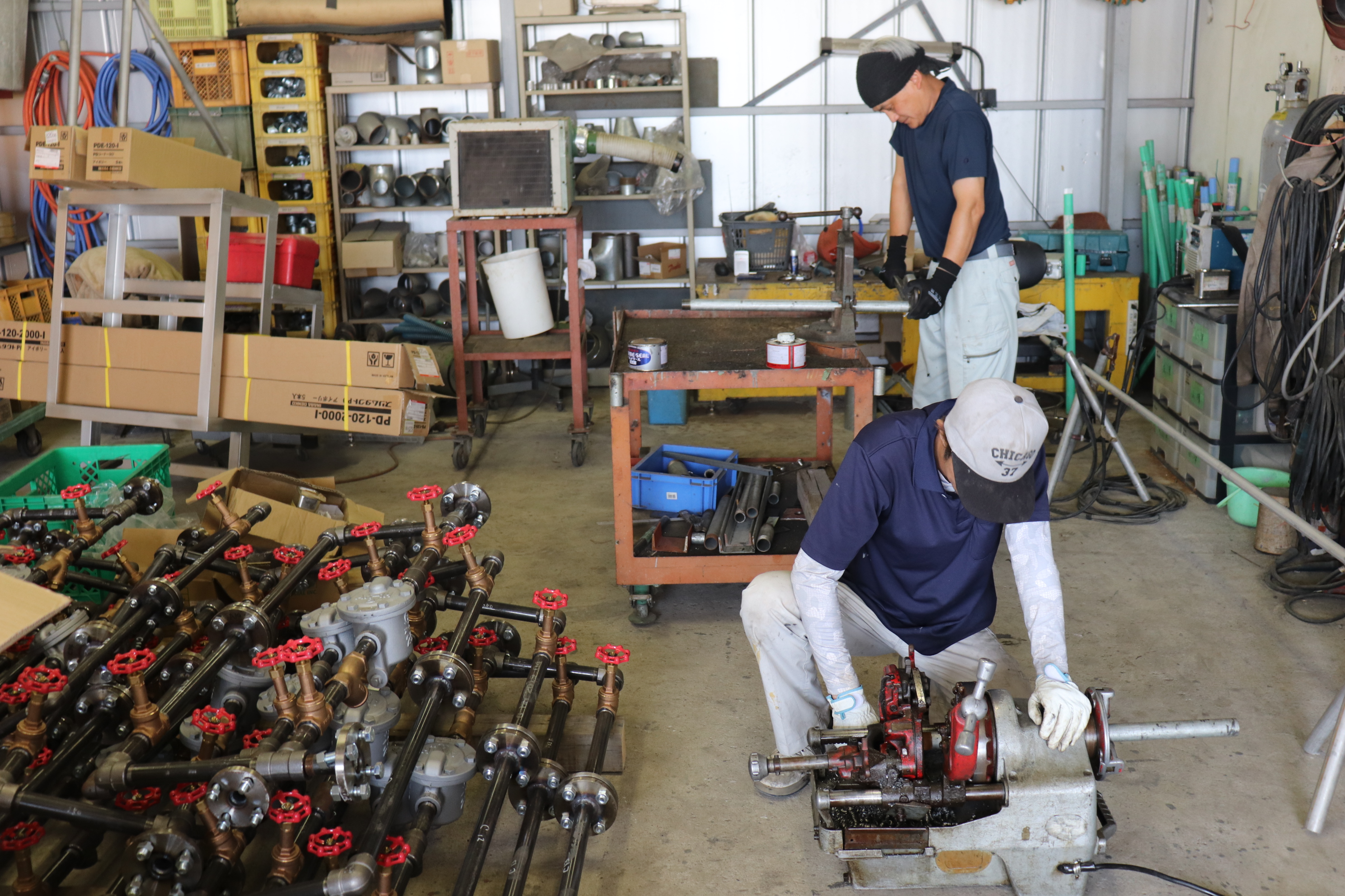 当社では、病院等の公共施設から大手食品メーカーの工場等、多種多様の小さな現場から大きな現場まであります。行う作業も多岐に渡り、各種配管の溶接・組み立てから管理業務まで、幅広い業務を行っております。だからこそ、様々な技術や経験を積み上げていく事ができ、配管工として徐々にステップアップできる環境が整っております。